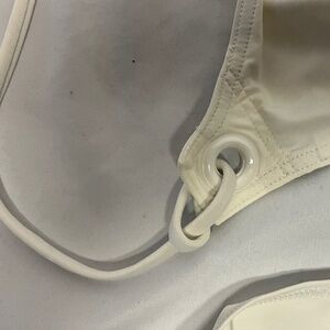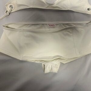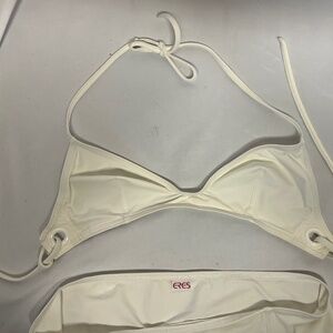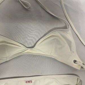 This is a very cute white Eres bikini. The top ties at the neck and back. The bottom is a petit boy short style. Worn only once. I bought this in Athens for about $600. It is an XXS.