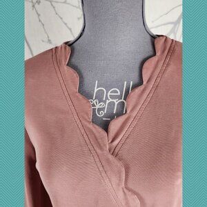 Eri + Ali Blush Pink Modal Blend Scalloped Wrap Blouse Feminine