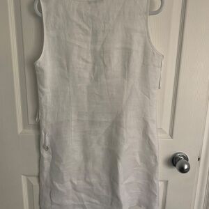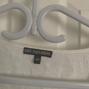 White linen top with polyester trim. Size 38 which fits like US size 6. V neck. Zipper and tie at the side