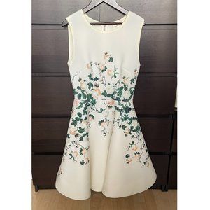 Ivory fit and flare dress with a beautiful English rose print that continues on the back, a gold-toned back zipper, and hidden side pockets. Made of a neoprene fabric that hangs beautifully. Perfect for spring, garden parties, high tea, Easter, and more!