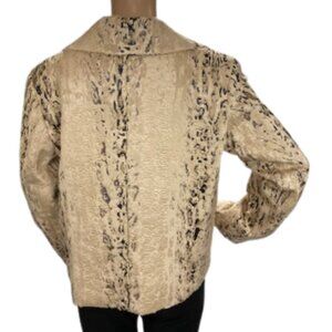Elevate your wardrobe with this unique and eye-catching blazer from Erin London, designed in a luxe textured fabric with a modern animal print twist. The soft beige base is accented with abstract black and taupe patterns, giving it a wild yet sophisticated look that’s perfect for both work and weekend wear. Featuring a structured collar, long sleeves, and a flattering mid-hip length, this piece buttons down the front with oversized tonal buttons for added style. The subtly crinkled texture of the fabric adds depth and character, while the tailored silhouette keeps it polished and put-together. Layer it over a black tee and jeans for a chic casual look, or pair it with trousers and heels for a standout office outfit.