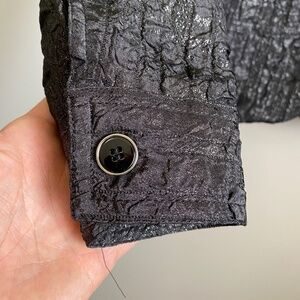 Erin by Erin London Women's Button Up Black Metallic Crinkled Look Jacket Small