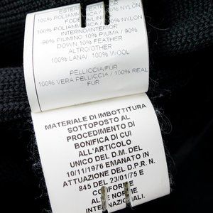 Composition: Fur Trim: 100% Rabbit Fur; Exterior: 100% Nylon; Lining: 100% Nylon; Interior: 90% Down, 10% Feather; Other: 100% Wool.