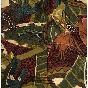 Ermenegildo Zegna 100% Silk Mens Tie Multicolor Leaf & Bird Design Green Brown
