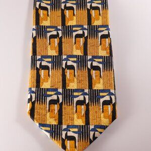 Ermenegildo Zegna 100% Silk Necktie Abstract Gold Blue Black Made in Italy 59"