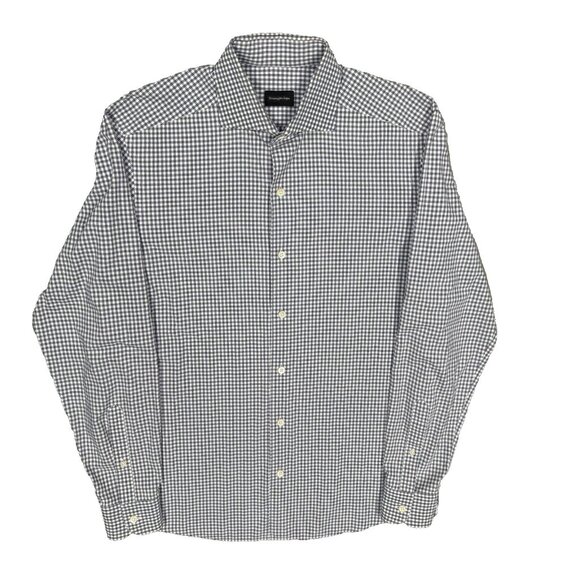 Ermenegildo Zegna Dress Shirt Check Textured Cotton Long Sleeve 15.5 Medium