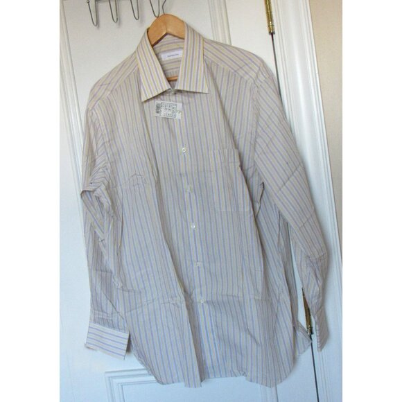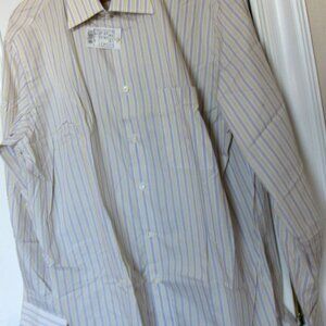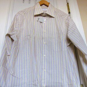 Ermenegildo Zegna Dress Shirt Long Sleeve Cotton, White/Tan/Yellow, sz.46/18
