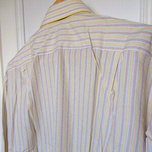 Ermenegildo Zegna Dress Shirt Long Sleeve Cotton, White/Tan/Yellow, sz.46/18, button Down, shoulders: 20in