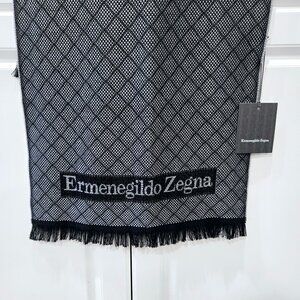 Ermenegildo Zegna - Fringed Wool Intarsia-Knit Logo Scarf - Gray