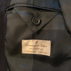 Luxury Blazer from Ermenegildo Zegna. Fabric is in 70% cashmere - 30% silk. Made in Italy. Dark navy colour. Size 52. This is a statement piece, very good condition.