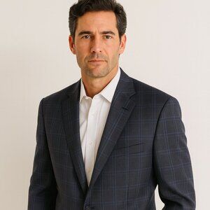 O’Connors Calgary Ermenegildo Zegna Men's Navy Plaid Wool Suit Jacket Blazer 56L