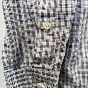 Ermenegildo Zegna Shirt Mens Medium Blue Brown Check Plaid Button Down Casual
