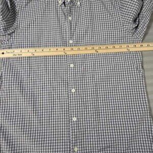 Style: Mens long-sleeve button-front shirt with a button-down collar in a small check plaid pattern.