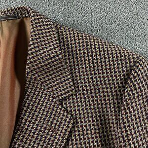 Ermenegildo Zegna Soft Wool Mohair Houndstooth Blazer Men's 44 Red Brown Blue