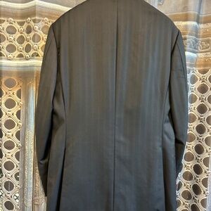 Ermenegildo Zegna (Su Misura) Trofeo Men's 100% Wool Suit (Super fine Australian Wool). Dark Navy Blue, Size 48 R. Jacket : The Jacket is a drop 8 jacket, has 3 button front, 3 flapped pockets, the sleeves surgeons cuffs with 4 functioning buttons and the back of the jacket has double vents. Pants : Flat front, zipper fly with secure button, pockets on sides with no cuffs on bottom, waist 33". The luxuriously soft finish of this tailoring Italian suit reflects the brand's long-standing commitment to creating elegant menswear from the finest natural textiles. Both the jacket and the pants are embellished with a subtle lined pattern. Worn by a non-smoker. This suit is fully lined.