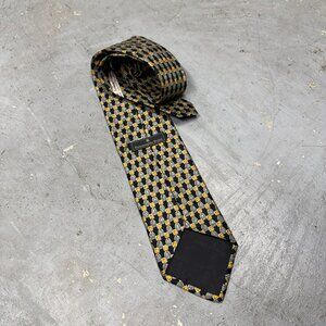 Ermenegildo Zegna Tie 100% Silk Made in Italy Geometrick Black/Gold 3.5"