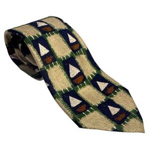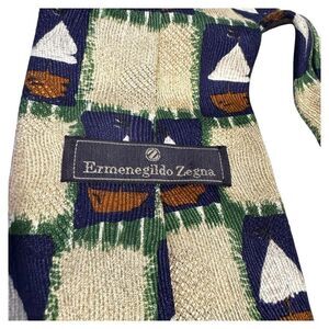 Ermenegildo Zegna Tie Clothing sailboat Silk Jacquard Made in Italy 3.75"W 60"L