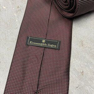 Ermenegildo Zegna Tie Polka Dot 100% Silk Made in Italy Brown/Red 3.5"