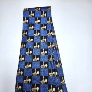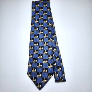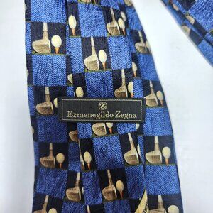 Ermenegildo Zenga Golf Necktie Men's Silk Tie 100% Silk Blue Black Gold Neck Tie