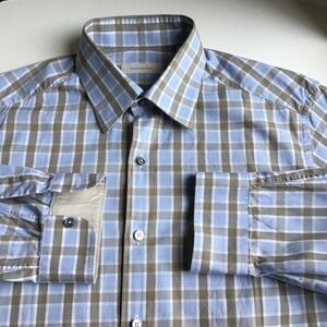 Erminegildo Zegna Pale blue & green checks cotton shirt Sz L made in Italy 🇮🇹