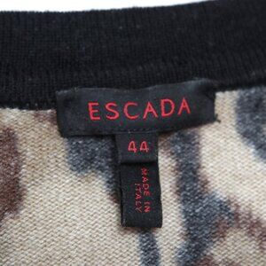 Escada Cashmere Wool Cardigan Sweater Leopard Animal Print Tan Brown READ