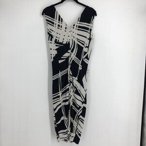 Escada Dido black & white print sleeveless Twisted faux wrap midi dress 34 (SP)