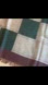 Elegant checkered scarf with fringe. Features green and cream pattern with burgundy border and fringe