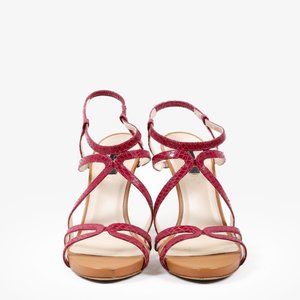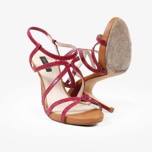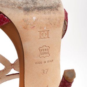 Escada Hot Pink Snake-Embossed Cage Sandals