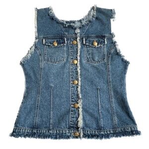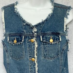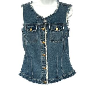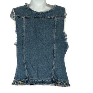 Escada Sport Blue Denim VEST Cotton Sleeveless Metal Buttons Size Medium Frayed