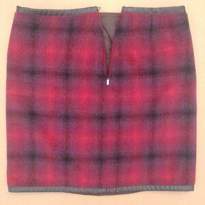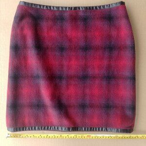 Escada Sport Vintage Soft Fuzzy Red Black Plaid Skirt Leather Trim