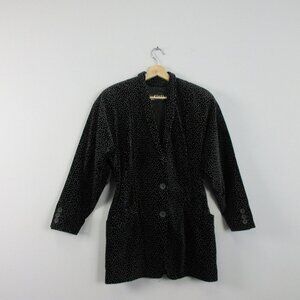 Escada Velvet Polka Dot Blazer Women 34 Cotton Broad Shoulder Black 90's Vtg 674