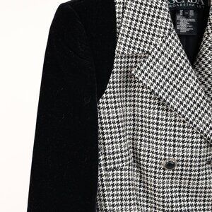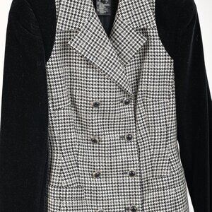 Escada Vintage Black White Houndstooth Double Breasted Velvet Blazer