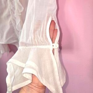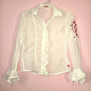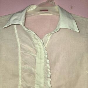 Escada White Ruffled Women's Burron-up Top, Size XS.