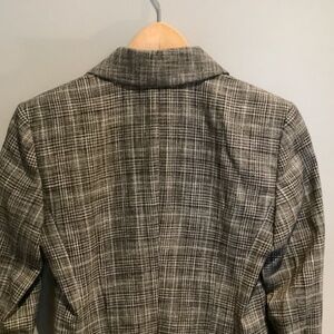 Scale of plaid is different on back than front, it’s a subtle detail which gives it a bit of an informal, playful feel.