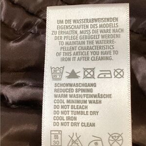 Washable Escada trench coat in a brown fabric with s sateen finish .