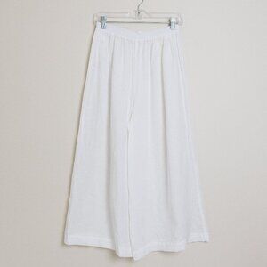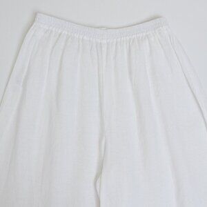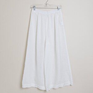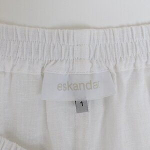 Eskandar Linen Cropped Pants White Wide Leg Elastic Waist Lagenlook Size 1