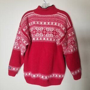 Eskimo Fair Isle Norway Wool Red White Jacket Lined L
