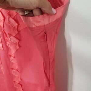 Esley Blush Coral Sleeveless Cotton Blend Polo Collar Button Ruff Detail Dress M