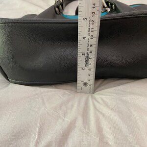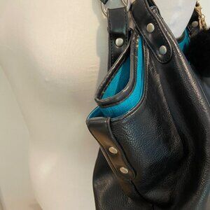 Espe Black Vegan Leather Purse Tote Bag pouch With Pom-Pom Floral Interior boho