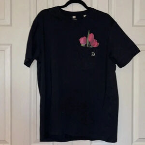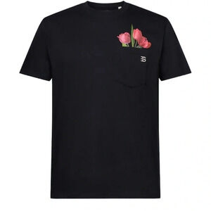 Espirit Black floral pocket detail crewneck unisex T-shirt Sz XL