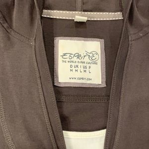 Espirit | Brown Hooded Long Sleeve V-neck Top