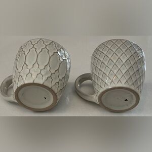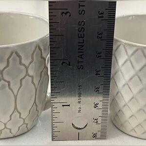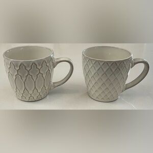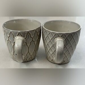 Elegant set of two gray mugs with unique patterns. Perfect for coffee or tea. Holds about 60 ml / 1/4 cup (2 fluid oz) with space for additions. Very good condition. These little mugs have a beautiful North African / Middle Eastern look.