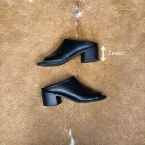 Esprit Black Peep Toe Mules Size 8M Chunky Block Heel Slide Sandals Faux Leather