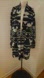 Stylish black and white sweater. Features geometric patterns. Open front design. Perfect for layering.