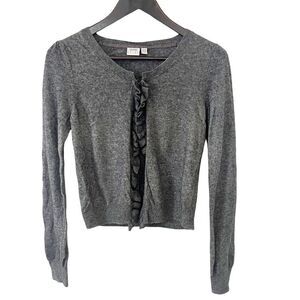 Esprit Dark Grey Cashmere Wool Blend Ruffled Cardigan Sweater