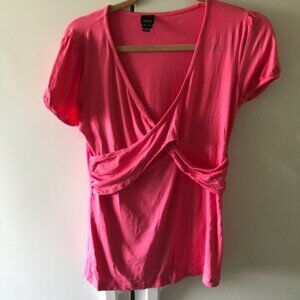 Esprit Drapey Hot Pink Stretch Puff Sleeves Criss Cross Top T- Shirt Tee Ruched