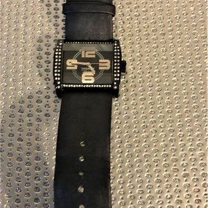 For watch collectors! Esprit black opulence peau de soie square face evening watch with rhinestone.