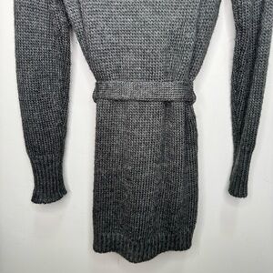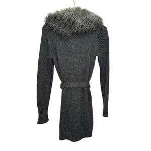 Esprit Faux Fur Collar Wrap Grey Knit Cardigan Belted Size Small