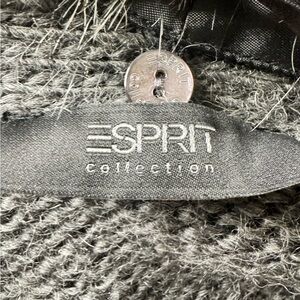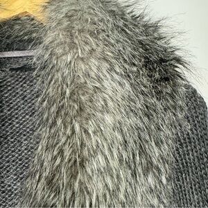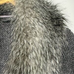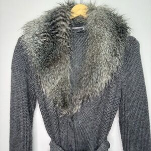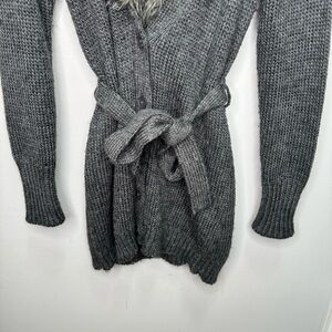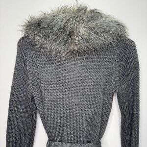 Esprit Faux Fur Collar Wrap Grey Knit Cardigan Belted Size Small