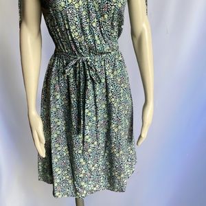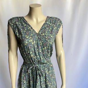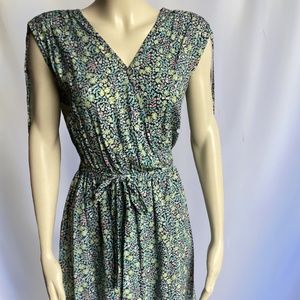 Esprit Green/Blue/Yellow Sleeveless Mini Dress with Floral Print, Cross-over Fro